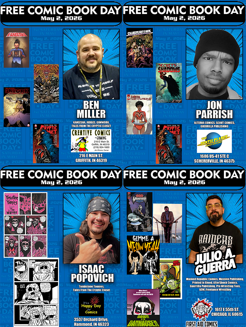 Isaac Popovich will be at Happy Day Comics in Hammond, IN. This is a very special FCBD as it is the launch day for the Kickstarter of The Tombstone Toonies Collection Vol. 1. You will be able to back the project with the creator himself, pick up some of his work and get it signed.